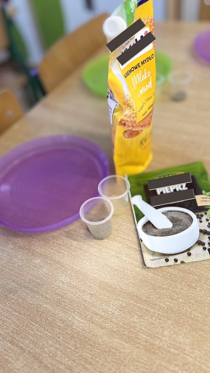 „Brudne ręce”-eksperyment z czarnym pieprzem i mydłem.