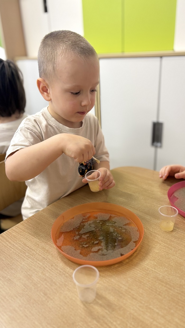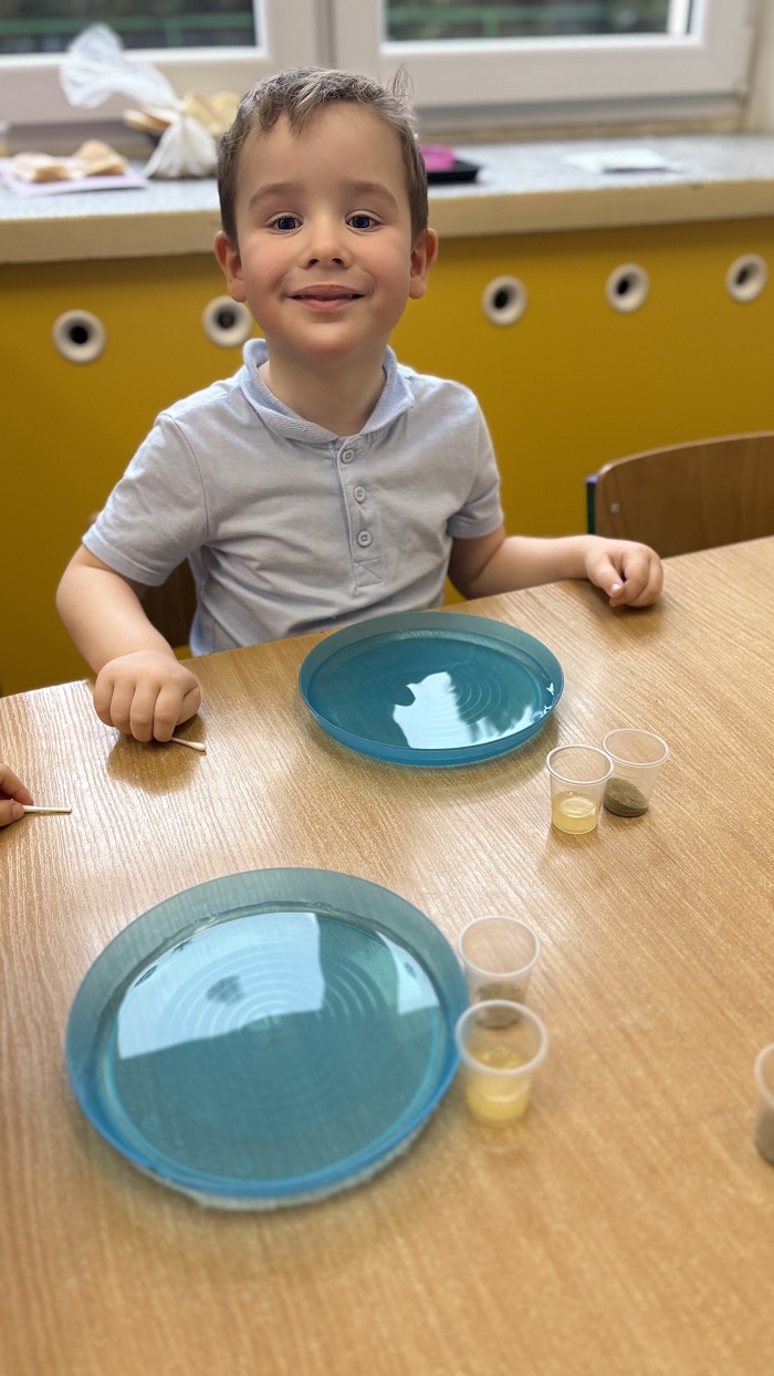 Cytrynki realizując blok tematyczny „Jak dbać o zdrowie” postanowiły sprawdzić reakcję mydła na zarazki i brudne rączki. Do talerza z wodą wsypały pieprz czarny mielony. Pieprz rozproszył się po powierzchni wody. Następnie każde dziecko przy użyciu patyczka higienicznego zamoczonego do mydła w płynie wykonało doświadczenie umieszczając patyczek na rozproszonym pieprzu. Pieprz „ucieka” od mydła. To było ciekawe badanie.