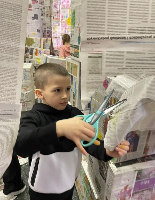 Czy stara gazeta może stać się dziełem sztuki? Oczywiście, że tak! Dzisiejsze zajęcia plastyczne upłynęły nam pod znakiem kreatywnego recyklingu. Zamiast na tradycyjnych białych kartkach do dzisiejszych zajęć Odkrywcy wykorzystali gazety, które stały się niezwykłym tłem dla ich twórczości.