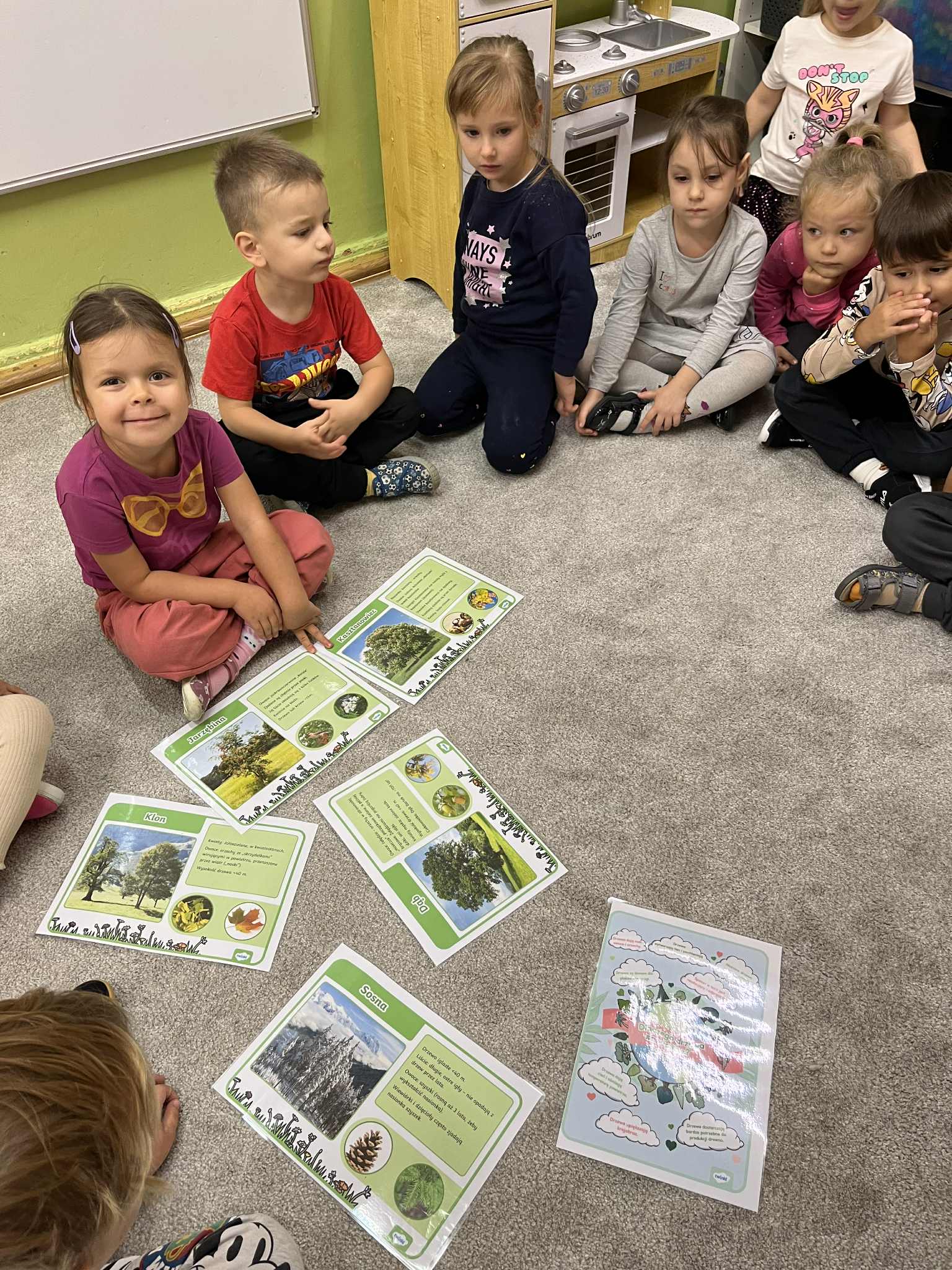 Podczas rozmów przedszkolaki dowiedziały się także, dlaczego drzewa są tak potrzebne – dają tlen, cień, schronienie zwierzętom i piękno naszej planecie. Wspólnie doszliśmy do wniosku, że warto o nie dbać i chronić je każdego dnia.