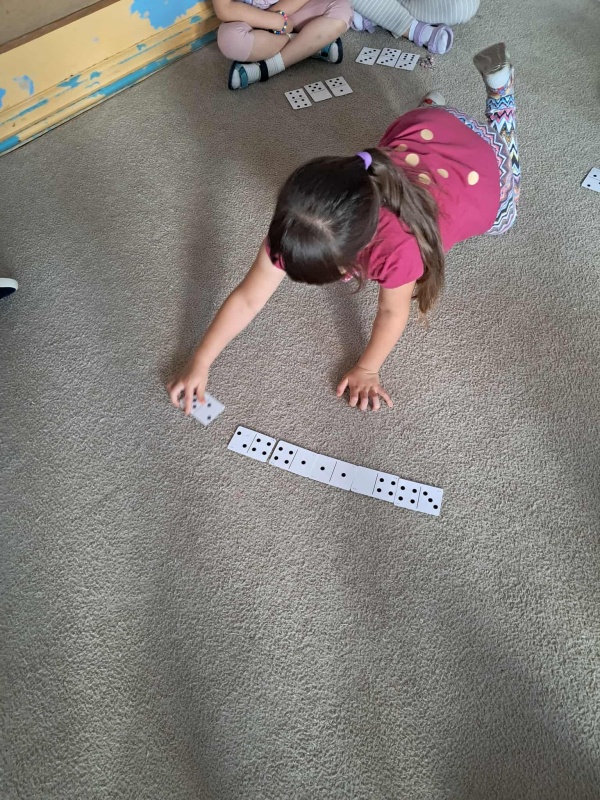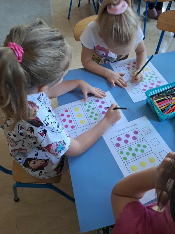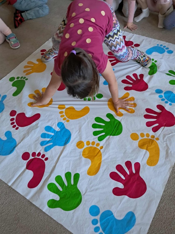 Nie zabrakło również zabaw matematycznych - dzieci liczyły kroki, grały w „kropkowe domino”, liczyły oczka na kostkach do gry, a także ćwiczyły spostrzegawczość i koordynację ruchową podczas gry w Twistera.