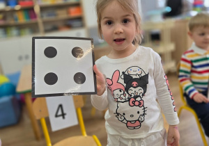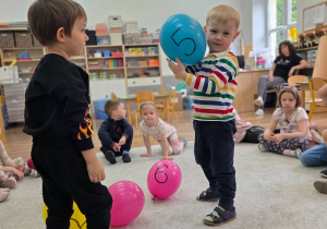 Przedszkolaki uderzały łapkami w odpowiednie liczby wskazane przez nauczyciela, rozpoznawały i nazywały kolory oraz figury geometryczne, a także je sortowały. Dopasowywały kropki do właściwych liczb na krzesełkach, układały rytmy oraz wyszukiwały liczby ukryte wśród balonów.