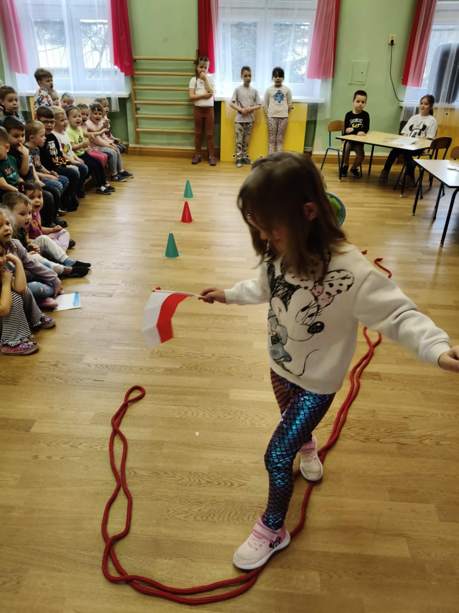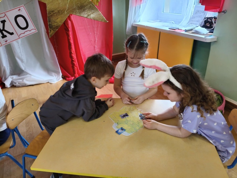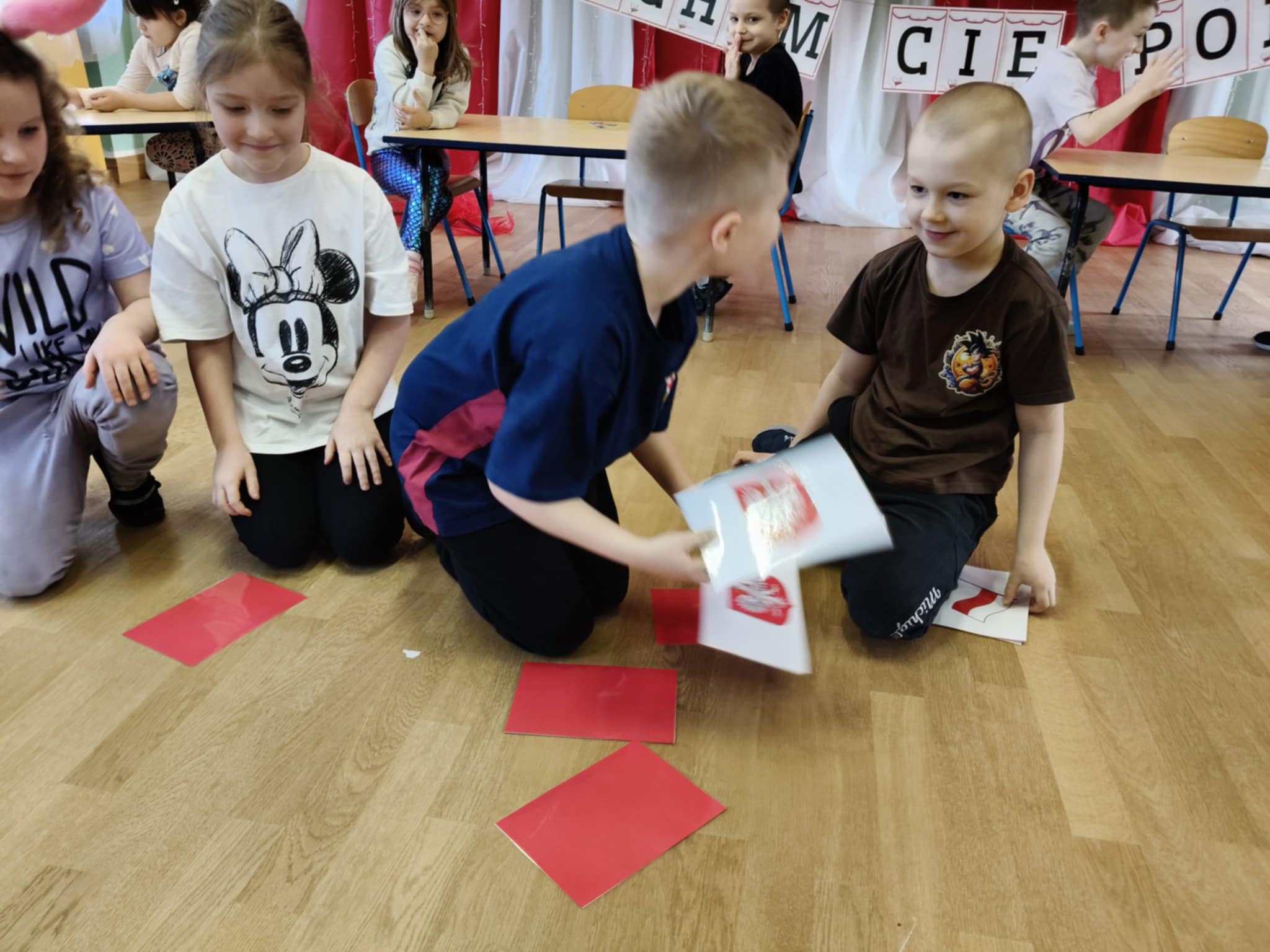 Dzisiaj w naszym przedszkolu odbył się wyjątkowy Festiwal Wiedzy o Polsce „Kocham Cię, Polsko”. W wydarzeniu wzięły udział dzieci z grupy 6-latków, które poprzez zabawę, rywalizację drużynową i różnorodne zadania pogłębiały swoją wiedzę o ojczystym kraju.