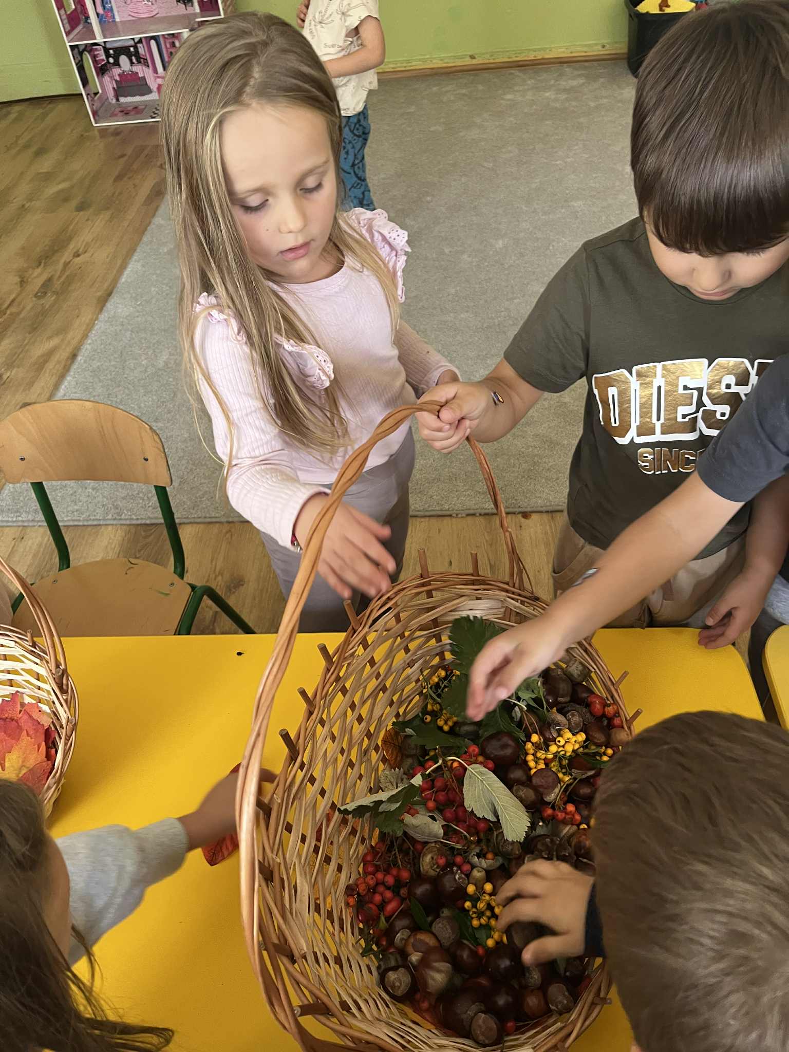 W ramach projektu „Przedszkolak młodym ekologiem” dzieci z grupy Tygrysków stworzyły wyjątkowy jesienny kącik przyrody. To niezwykłe miejsce powstało z ich ciekawości, zaangażowania i miłości do natury. Podczas jesiennych spacerów dzieci zbierały kasztany, żołędzie, jarzębinę, szyszki. Wszystkie te skarby trafiły do naszego kącika, gdzie przedszkolaki mogły je wspólnie uporządkować. Kącik stał się miejscem codziennych obserwacji i rozmów o zmianach zachodzących w przyrodzie jesienią. Dzieci dowiedziały się, dlaczego liście zmieniają kolory, jak zwierzęta przygotowują się do zimy i jak ważne jest dbanie o środowisko. Dzięki wspólnej pracy i kreatywności nasz jesienny kącik przyrody nie tylko ozdobił salę, ale również przypomniał wszystkim, że nawet najmłodsi mogą być prawdziwymi ekologami – uważnymi obserwatorami natury i jej przyjaciółmi.