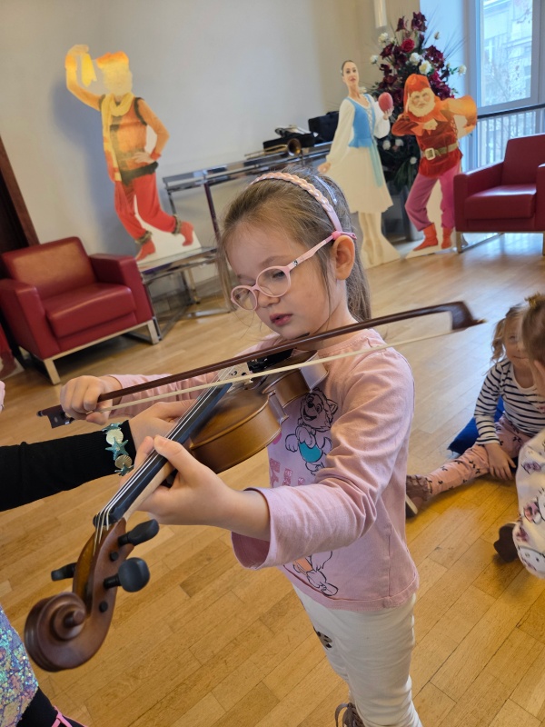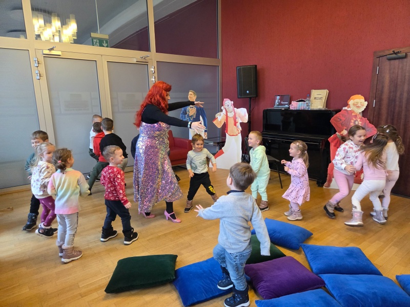 Podczas zajęć przedszkolaki słuchały fragmentów muzyki klasycznej, wykonywały ćwiczenia taneczne i wokalne, poznawały różne instrumenty i próbowały na nich zagrać, dowiadywały się, jak wygląda praca w teatrze. Dzieci miały również możliwość zobaczenia sali, w której odbywają się prawdziwe sceniczne występy. To doświadczenie wywarło na nich ogromne wrażenie i pozwoliło poczuć magię teatru z bliska.