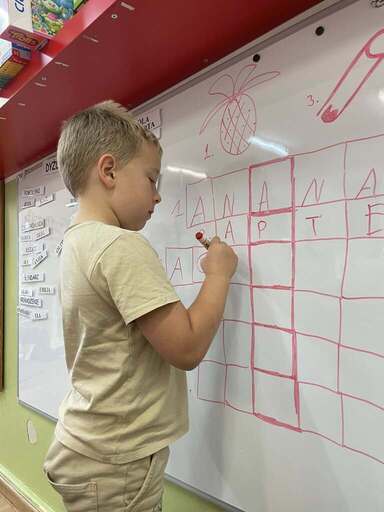 Zajęcia nie tylko wspierały rozwój kompetencji językowych, ale także ćwiczyły koncentrację, spostrzegawczość i współpracę w grupie. Dzieci z dużym zaangażowaniem i radością podejmowały kolejne wyzwania, a nauka była dla nich prawdziwą przyjemnością.