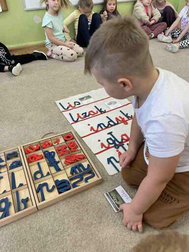 Nasi 6-latkowie aktywnie uczestniczyli w zajęciach rozwijających umiejętność rozpoznawania liter. Nauka odbywała się poprzez zabawę – dzieci pracowały z kolorowymi pomocami dydaktycznymi, układały wyrazy z liter oraz dopasowywały je do odpowiednich obrazków.