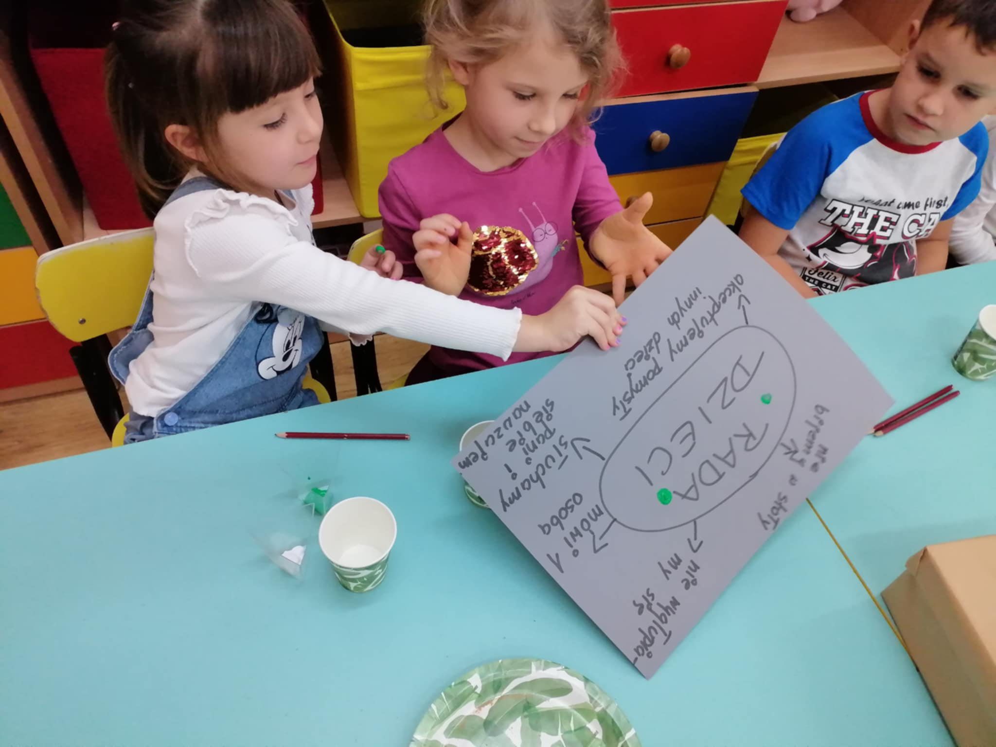 Wczoraj odbyło się pierwsze spotkanie Rady Dzieci. Po krótkim wstępie dzieci dzieliły się pomysłami na uatrakcyjnienie życia przedszkolnego. Pojawiły się m.in. propozycje nowych zabaw, kącików tematycznych, akcji plastycznych i dni specjalnych. Liczymy, że przynajmniej część tych fantastycznych propozycji uda się wkrótce zrealizować.
