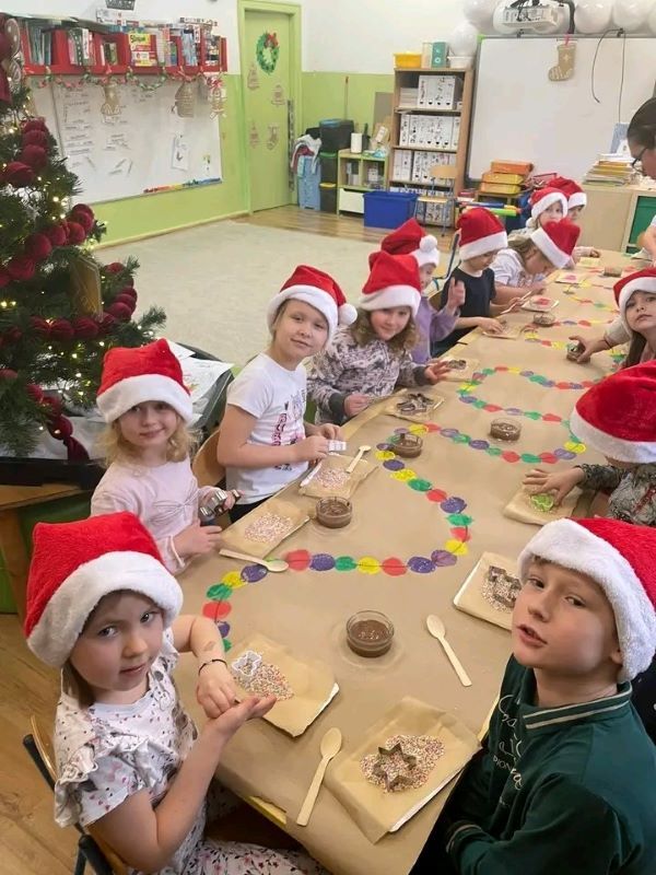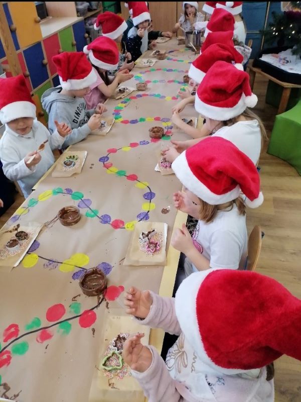 W piątek12.12.2025r. grupa V uczestniczyła w świątecznych warsztatach robienia czekoladek, które wprowadziły dzieci w magiczny klimat Bożego Narodzenia. Dzieci samodzielnie przygotowały czekoladki w świątecznych kształtach, dekorując je kolorowymi posypkami.