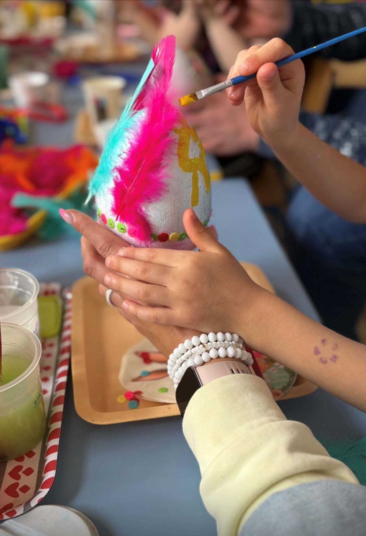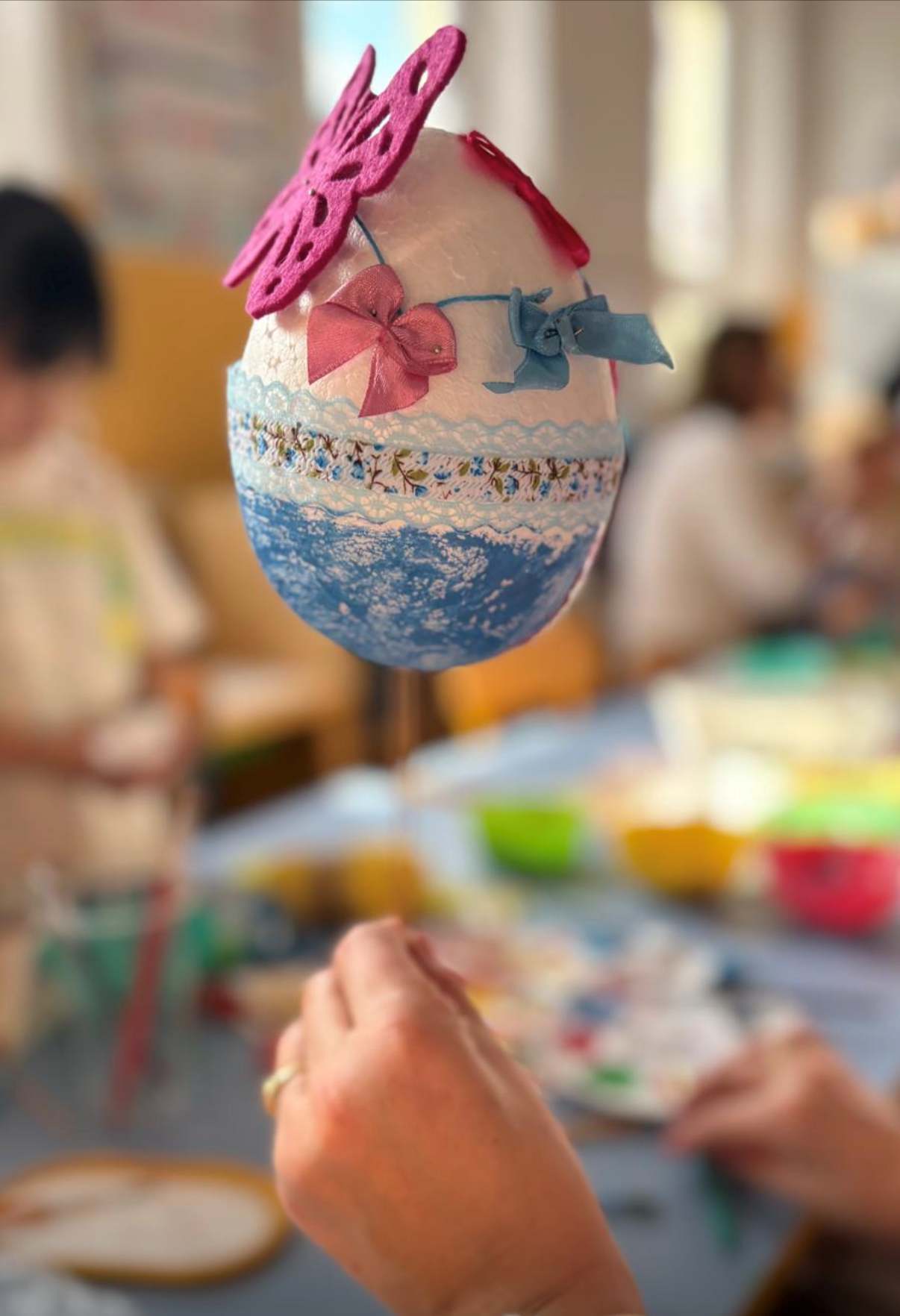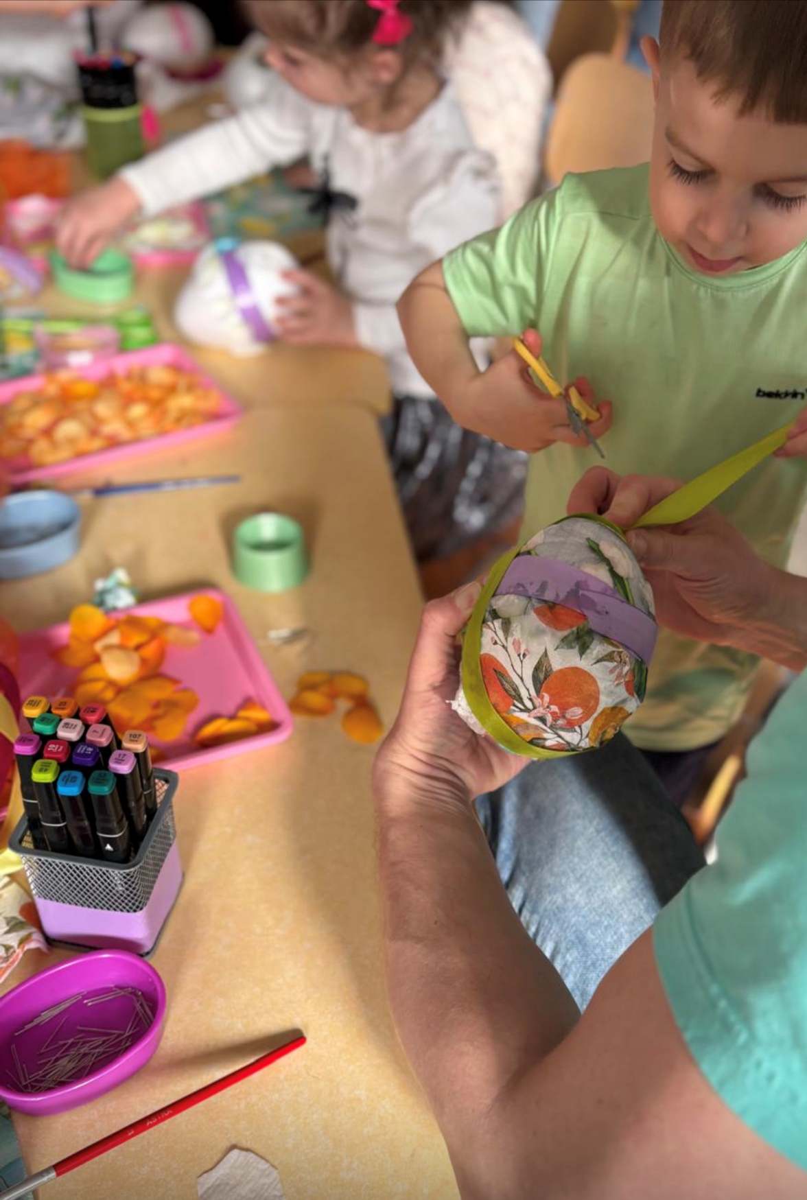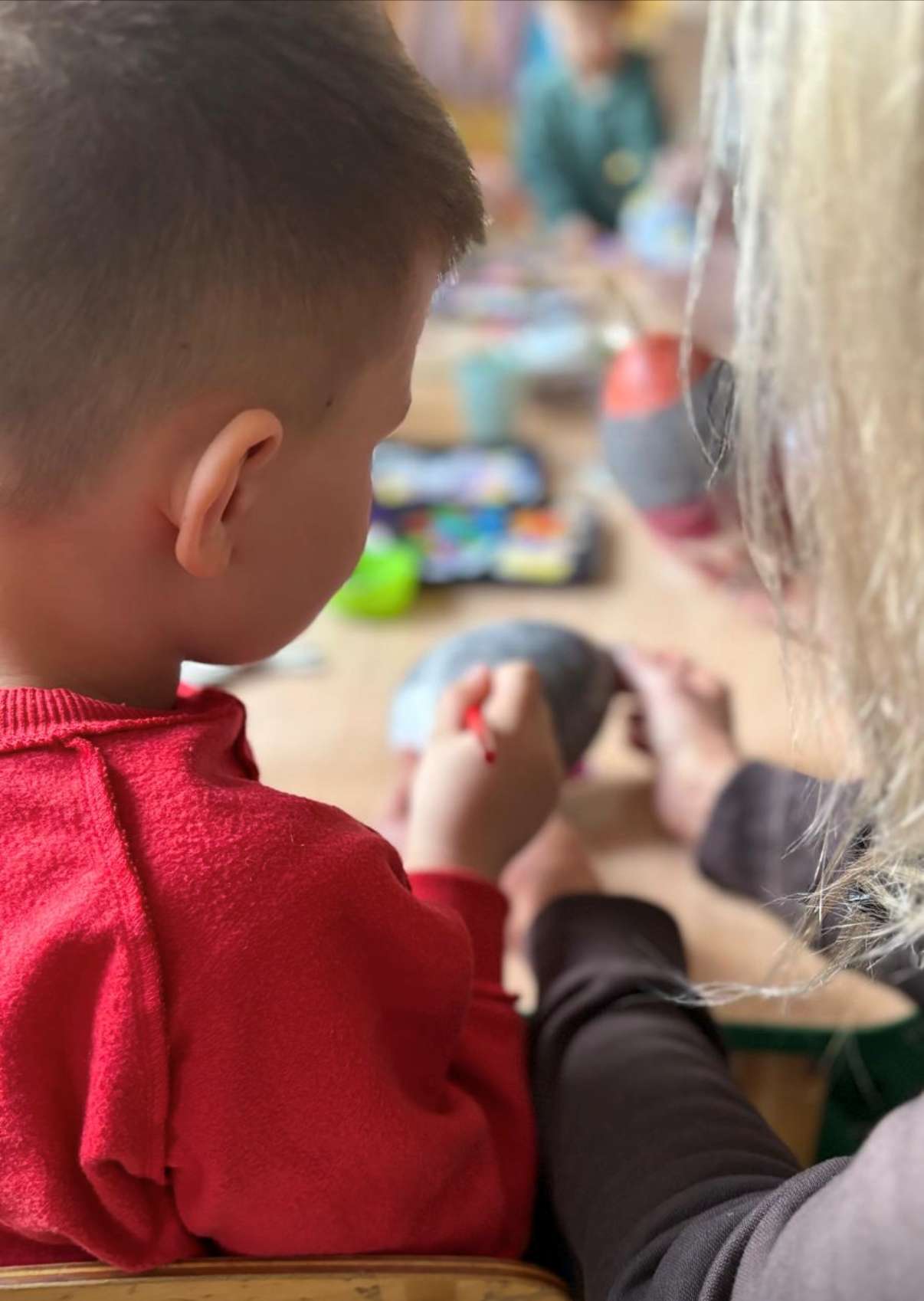 30 - tego marca każda grupa zaprosiła swoich rodziców na wspólne warsztaty Wielkanocne gdzie tworzyliśmy piękne, kolorowe jajka. Nasze jajka zawisną na drzewach w okolicy naszego przedszkola i będą zdobić okolicę w najbliższym czasie świątecznym.