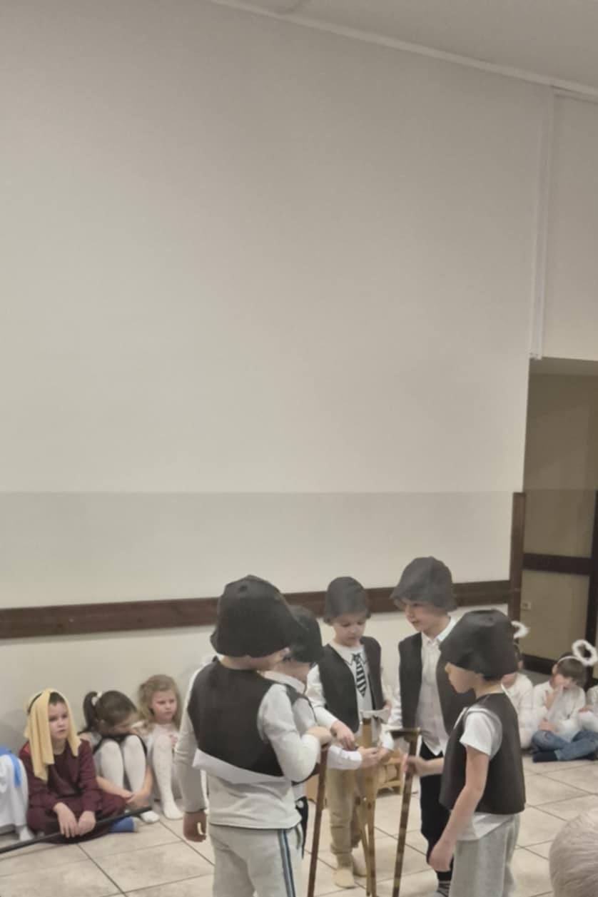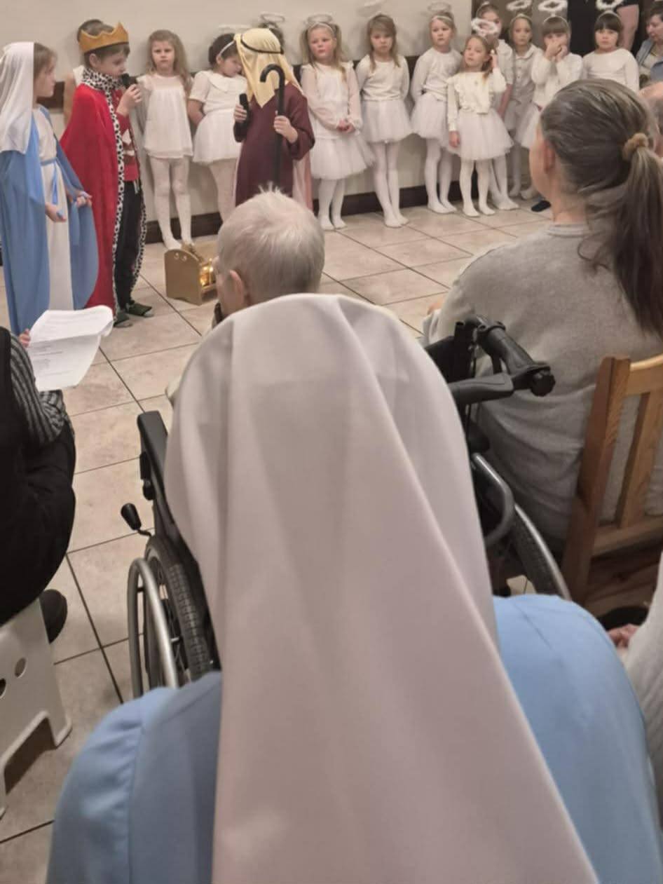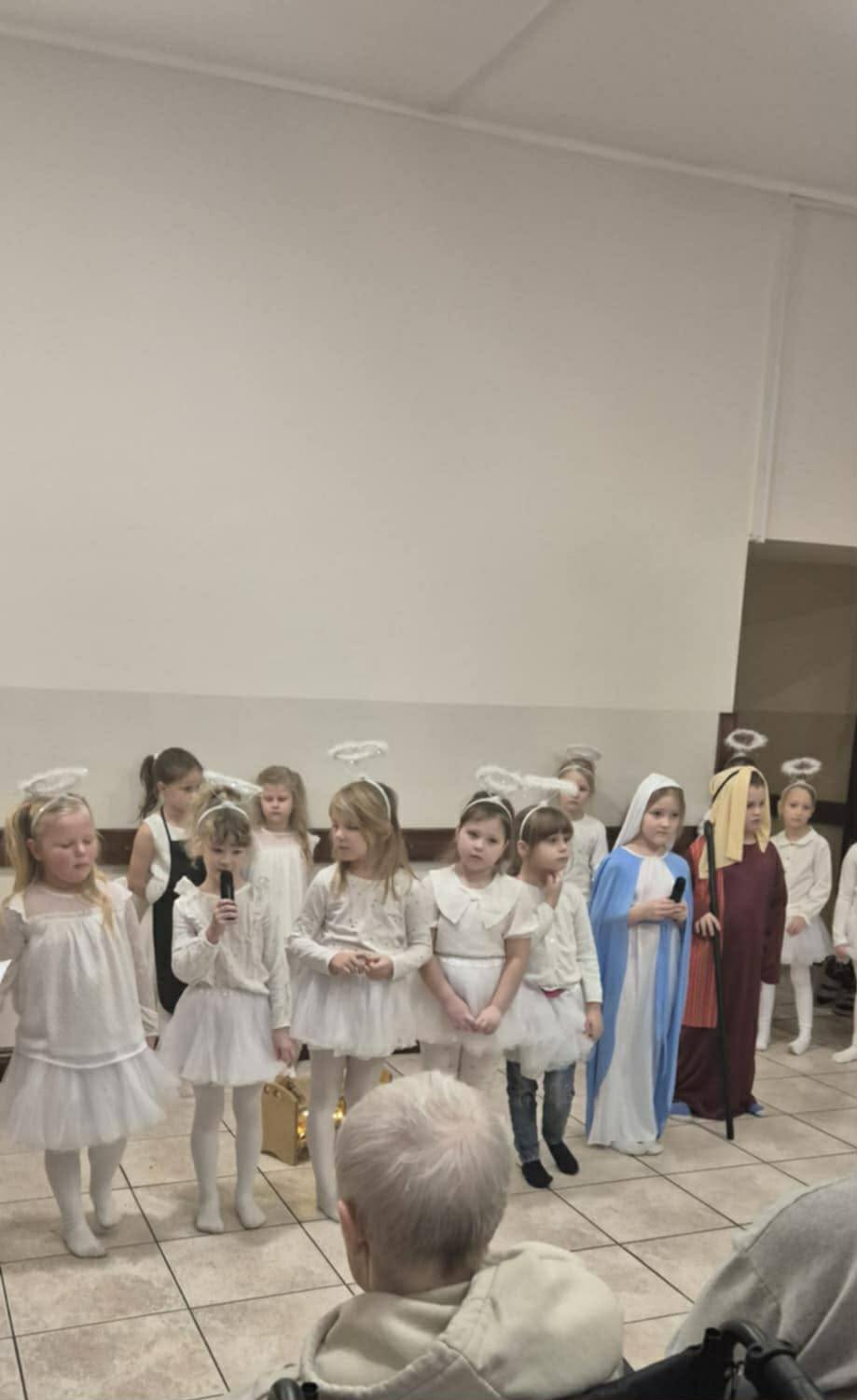 Podczas spotkania nasi mali artyści zaprezentowali podopiecznym domu wzruszające przedstawienie jasełkowe. Przedszkolaki z dużym zaangażowaniem wcieliły się w role Maryi, Józefa, aniołów, pasterzy oraz Trzech Króli. Występowi towarzyszyło wspólne śpiewanie kolęd oraz składanie serdecznych życzeń, które wywołały wiele uśmiechów i wzruszeń wśród seniorów.
