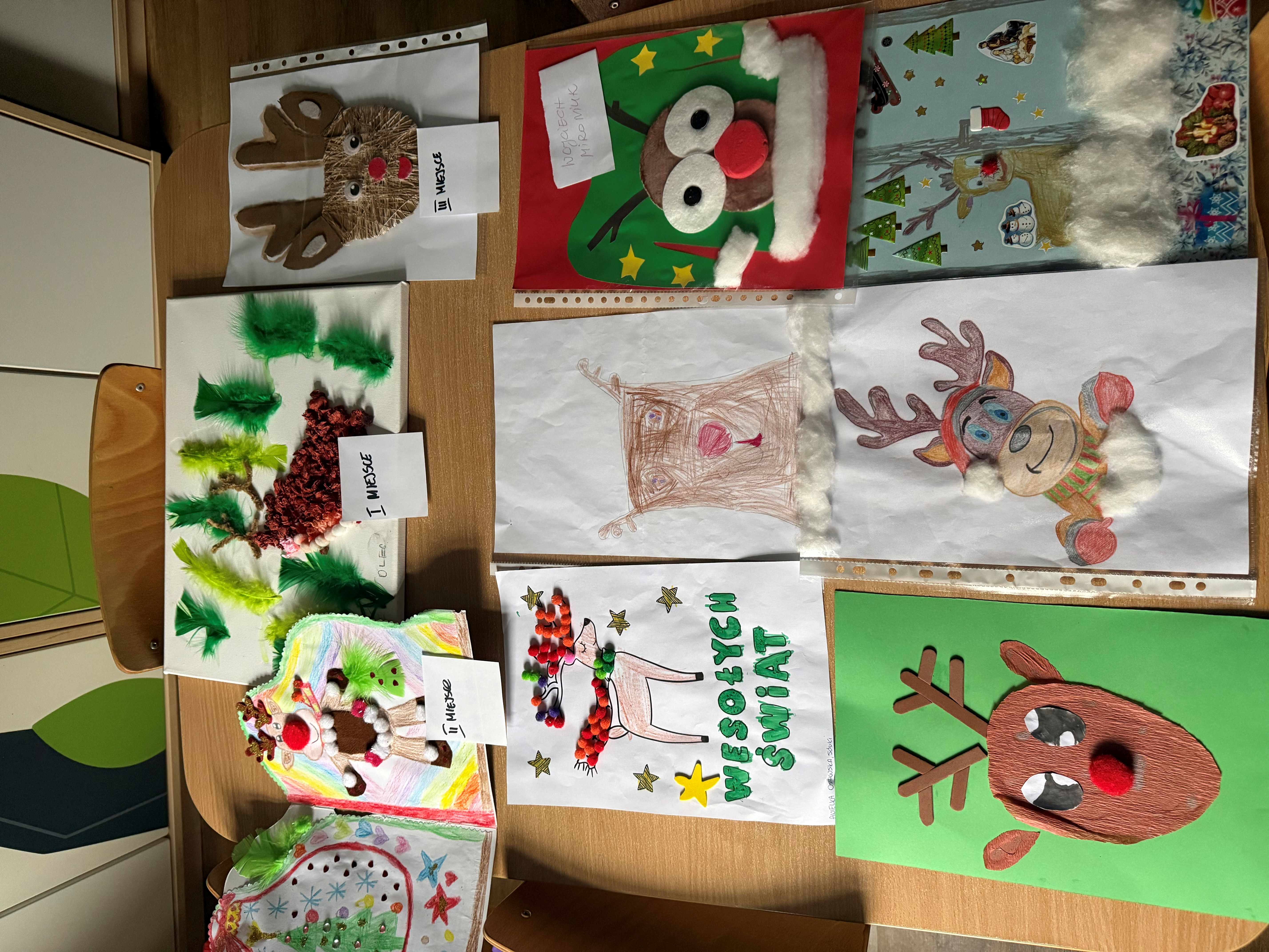 Chcieliśmy poinformować o wynikach świątecznego konkursu „Świąteczny Renifer” organizowanego przez nauczycielki: Darię Klimczak oraz Paulinę Milczarek. Wszystkie prace konkursowe bardzo nam się podobały ale ostatecznie zwyciężyły następujące osoby: