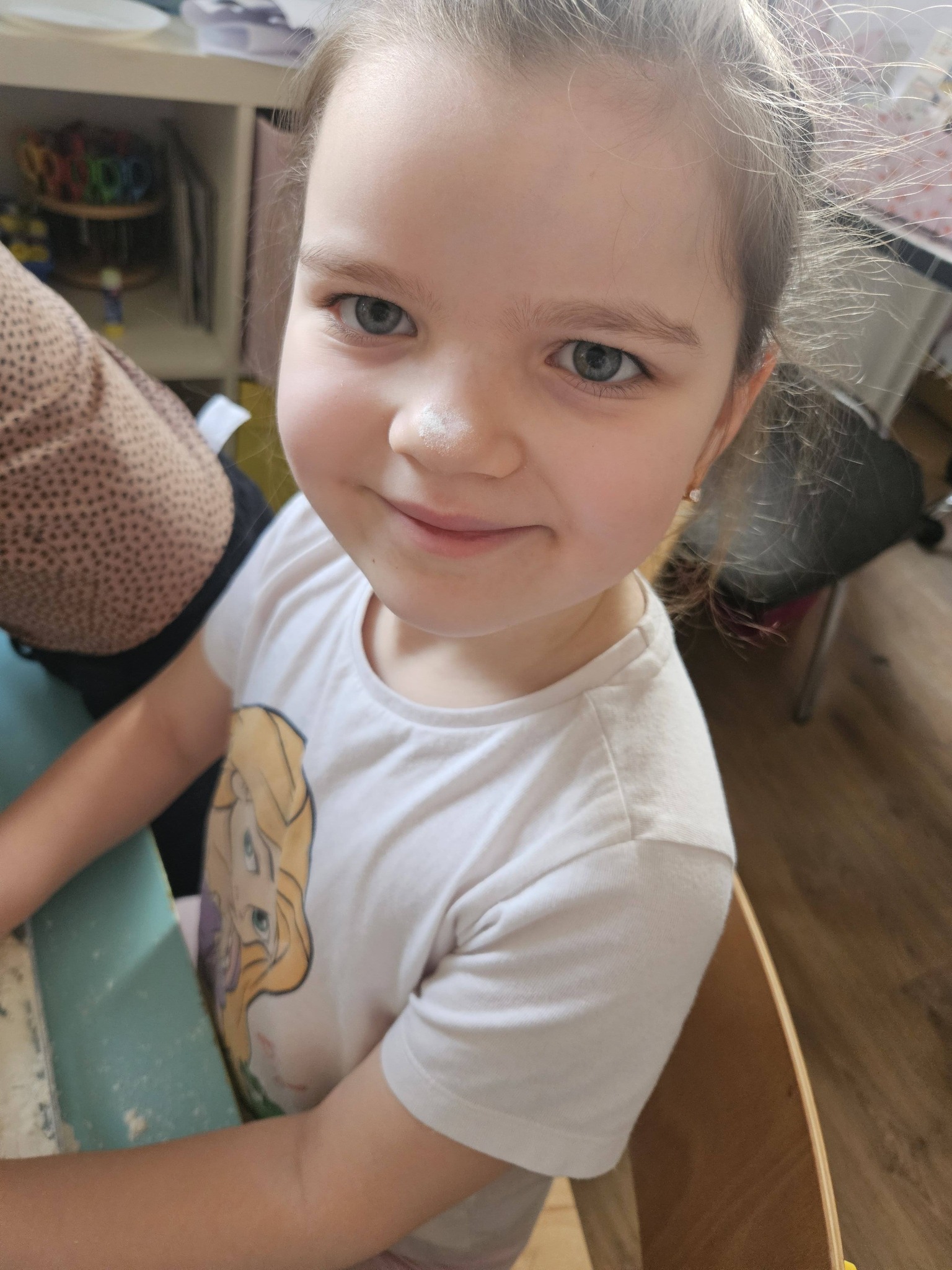 Było dużo śmiechu, ciekawości i wspólnej zabawy. Choć po zajęciach w sali pojawiło się sporo mąki, najważniejsze były radość dzieci i nowe doświadczenia zdobyte podczas wspólnej aktywności.