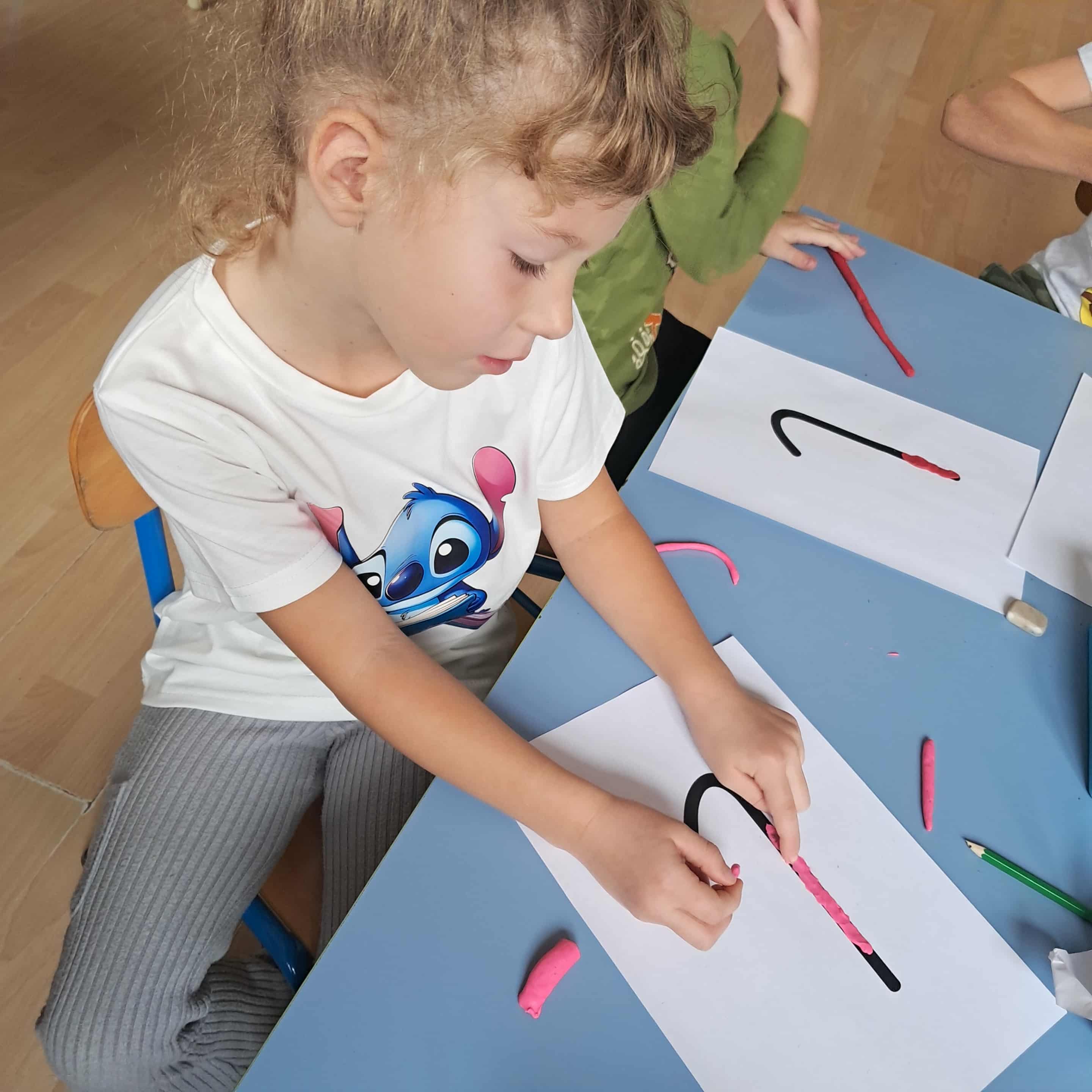 Podczas zajęć dzieci poprzez ruch, słuch i wzrok poznawały kształty liter, rozwijając przy tym